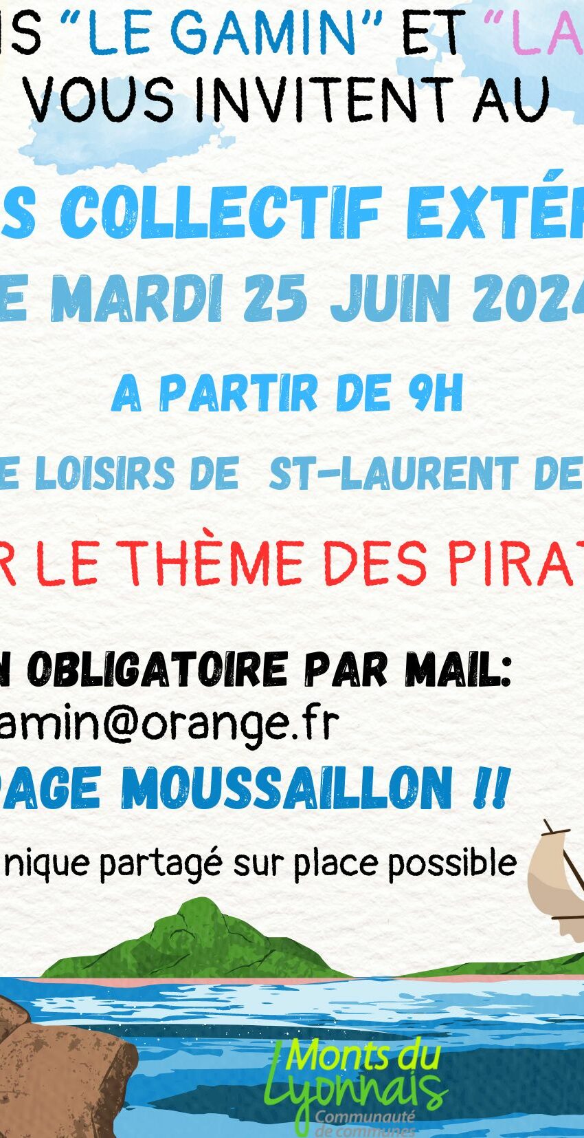 Mardi 25 Juin 2024: Temps Collectif Extérieur au centre de loisirs de St Laurent de Chamousset ! Pour finir notre année autour du voyage, embarquement immédiat pour parcourir les flots avec un thème sur les Pirates ! Jeux d'eau et activités sur les pirates rythmeront la matinée ! Déguisements bienvenus [...]