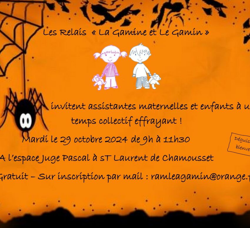 Temps Collectif Spécial Halloween Venez participer à un temps collectif spécial Halloween pendant les vacances d'octobre 2024 ! Gratuit - Sur inscription par mail : ramlegamin@orange.fr COMPLET
